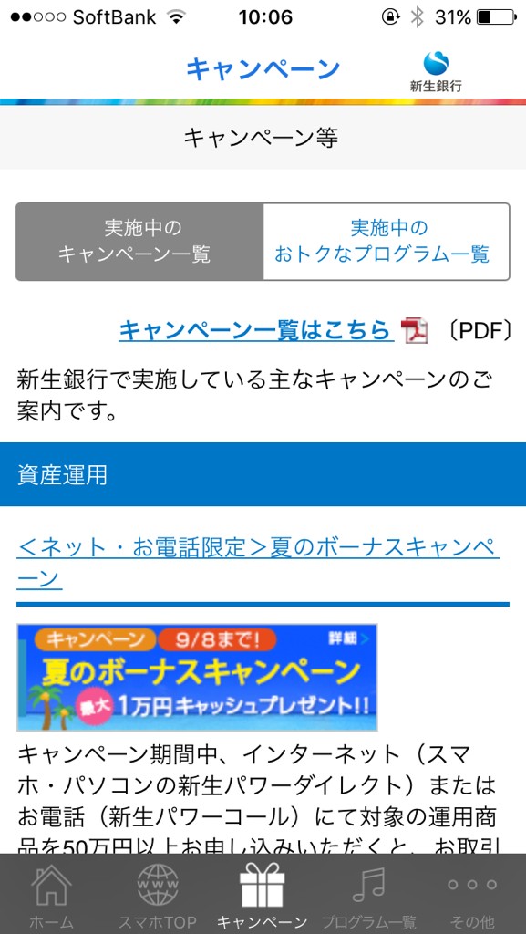アプリ内では実施中のキャンペーン・プログラムを簡単にサクサクと知ることができます。