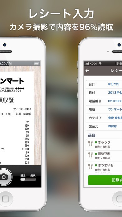 基本操作は大変簡単で、買い物したレシートをカメラで撮影するだけで日々の支出を記録できます。レシートは、しわしわになるとカメラで読み取りづらくなるので、買い物した後はきれいに持ち帰りましょう。しわしわになったレシートを撮影すると、金額が正確に読み取れない場合があります。その場合は、レシートを手で伸ばすと読み込むことがありますが、読み取れない場合は手入力をしなければなりません。