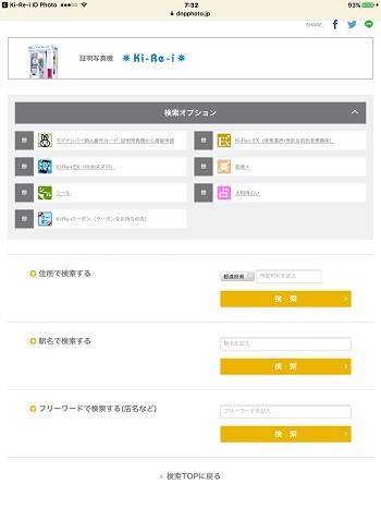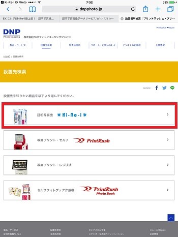 ④ 設置先検索をタップすると、株式会社DNPフォトイメージングジャパンのWEBサイトに移行して、次の画面が表示されます。