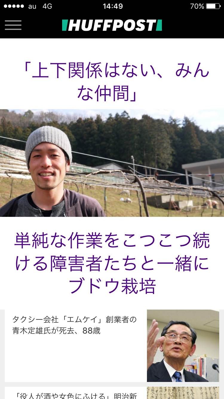 Huffington Postがおすすめするニュース記事が表示されています。政治や社会、キャリアなどの情報がみやすくまとめられています。