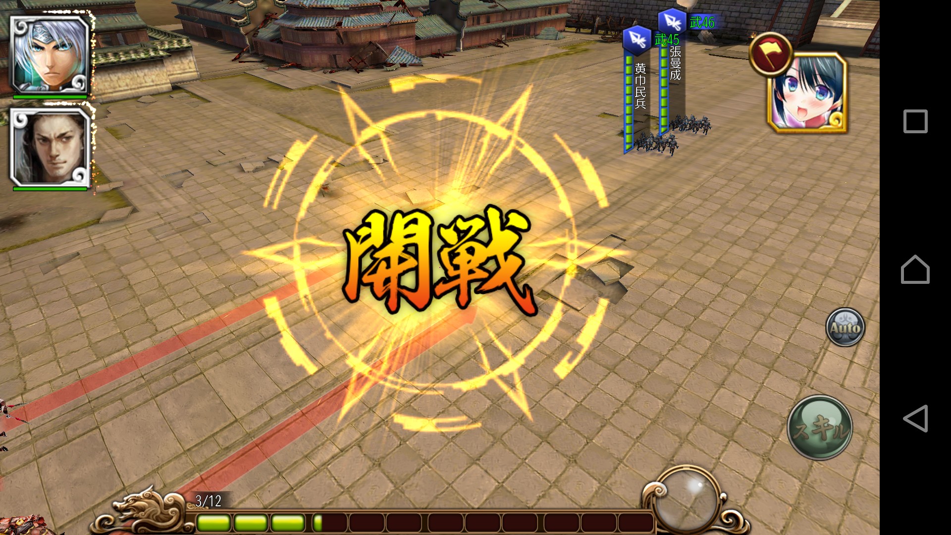 バトルはオートで行われ、移動や攻撃もすべて自動です。ただし、画面下の士気ゲージが一定値までたまると、各武将に「スキル」を発動させることができます。自軍の攻撃力や移動速度をアップさせたり、回復したりするスキルがあります。持っているスキルはキャラクターごとに違いますので、部隊編成の際などに良く確認しておくといいでしょう。