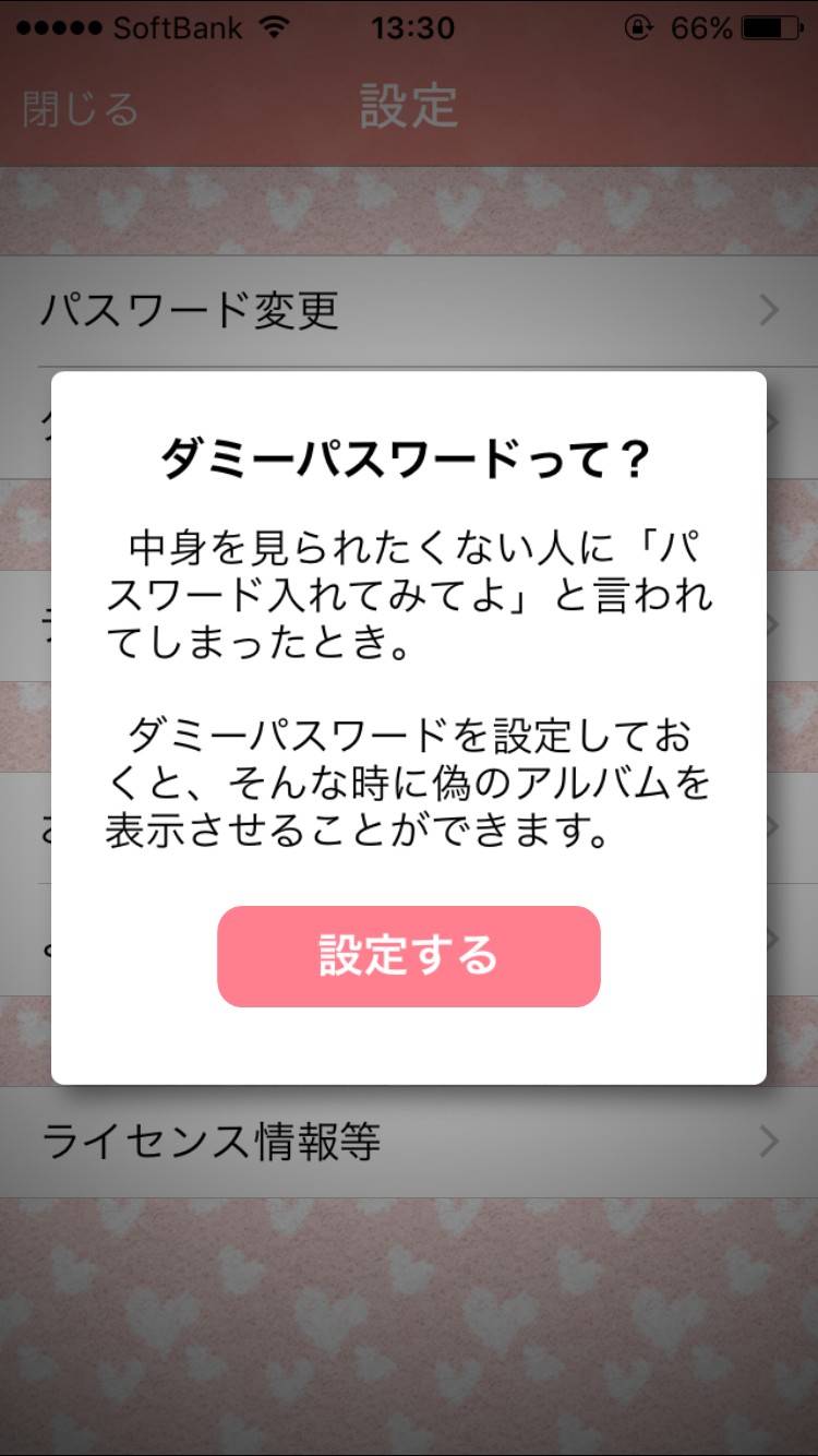 『ヒミツのアルバム - 見られたくない秘密の写真を安心安全に管理』の特徴的な機能のひとつがパスワードに対する二重構造。