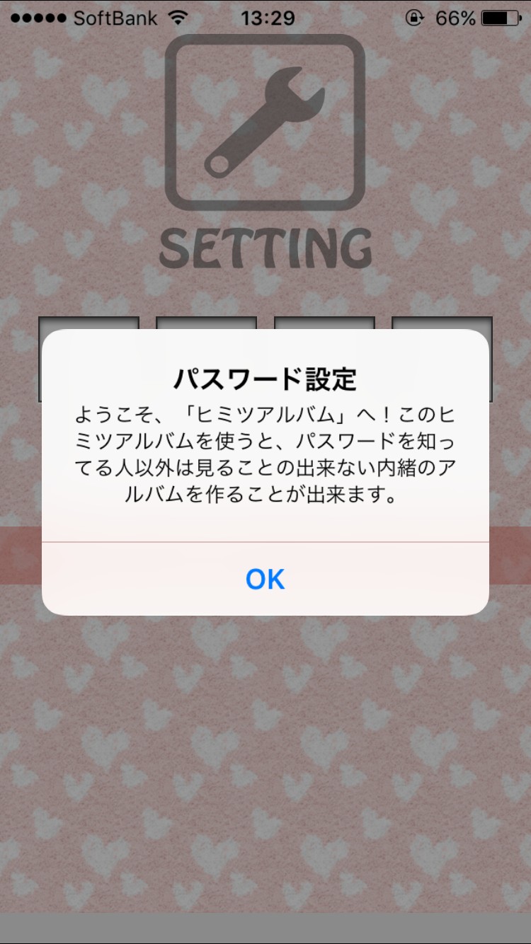 『ヒミツのアルバム - 見られたくない秘密の写真を安心安全に管理』はパスワードを4桁の数字で入力するところからスタートします。