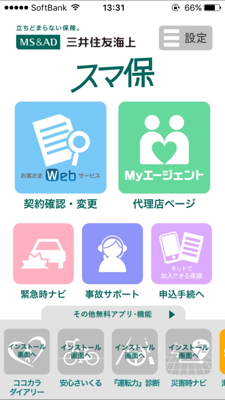 既に三井住友海上の保険サービスを利用している方は、現状確認の他、サポートナビにワンタップで繋ぐメニューもあるのでぜひとも入れるべきアプリです。