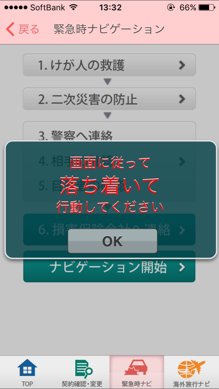 もしもの時のヘルプでは、その状況に応じた適切な即時の判断をナビゲーションしてくれます。