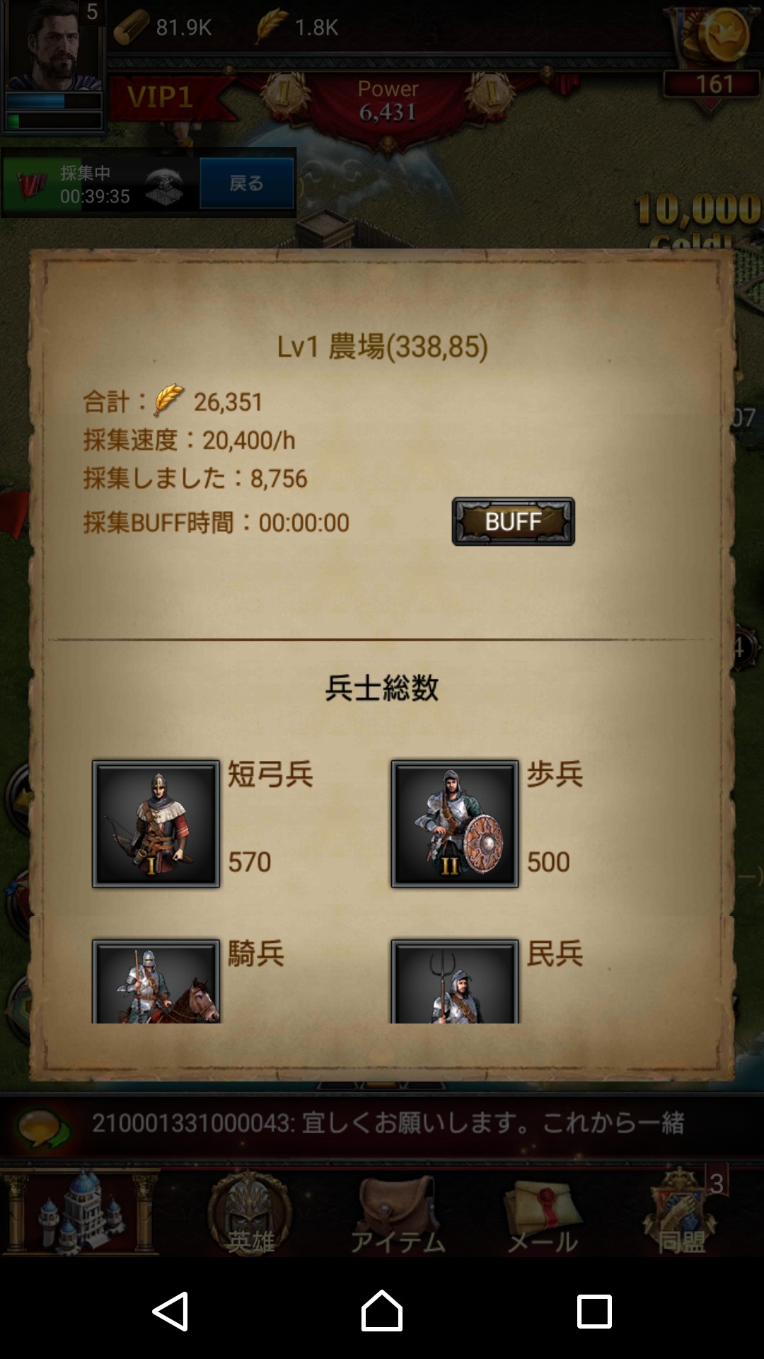 農場から収穫した食料は、兵の訓練に消費されます。多くの兵を育てるためには、食料の確保が不可欠です。農場のレベルを上げると、収穫量と収穫までのスピードが向上します。