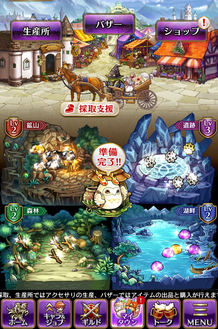 素材採取やバザーが楽しめる「マイタウン」を上手く活用してアクセサリを生産しよう!