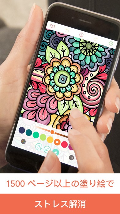 用意されている塗り絵は1500枚以上!動物や花、曼荼羅や幾何学模様など、さまざまなイラストがあります。また、随時追加されていますので、塗り尽くそうと思ったら、かなりの時間がかかるでしょう。好きなものから選んで始めたり、今日は時間とやる気がある!という場合は複雑なものに挑戦してみたりと、いろいろな遊び方ができます。いつでも中断することができるので、待ち時間などのひまつぶしにちょこちょこっと塗るのもおすすめです。もちろん、途中まで塗った絵の再開や、今まで塗った部分をすべて白紙に戻して塗り直しなども可能です。