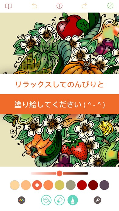 いわゆる「塗り絵アプリ」はいくつかありますが、「Pigment」は他のアプリとは少し違います。他のアプリは線で囲まれているところをタップして単一の色を付けますが、「Pigment」は実際に色鉛筆を使うように、画面を「こする」ことでこすったところにだけ色を付けることができます。また、iPhoneの3D TouchとApple Pencilにに対応しているため、対応機種で遊べば筆圧も感知します。塗り筋がつくので、手塗りっぽい味が出ますね。グラデーション塗りにも良さそうです。もちろん、他のアプリのように一区画を均一に塗れる塗りつぶしツールもあるので、適宜使い分けるといいでしょう。