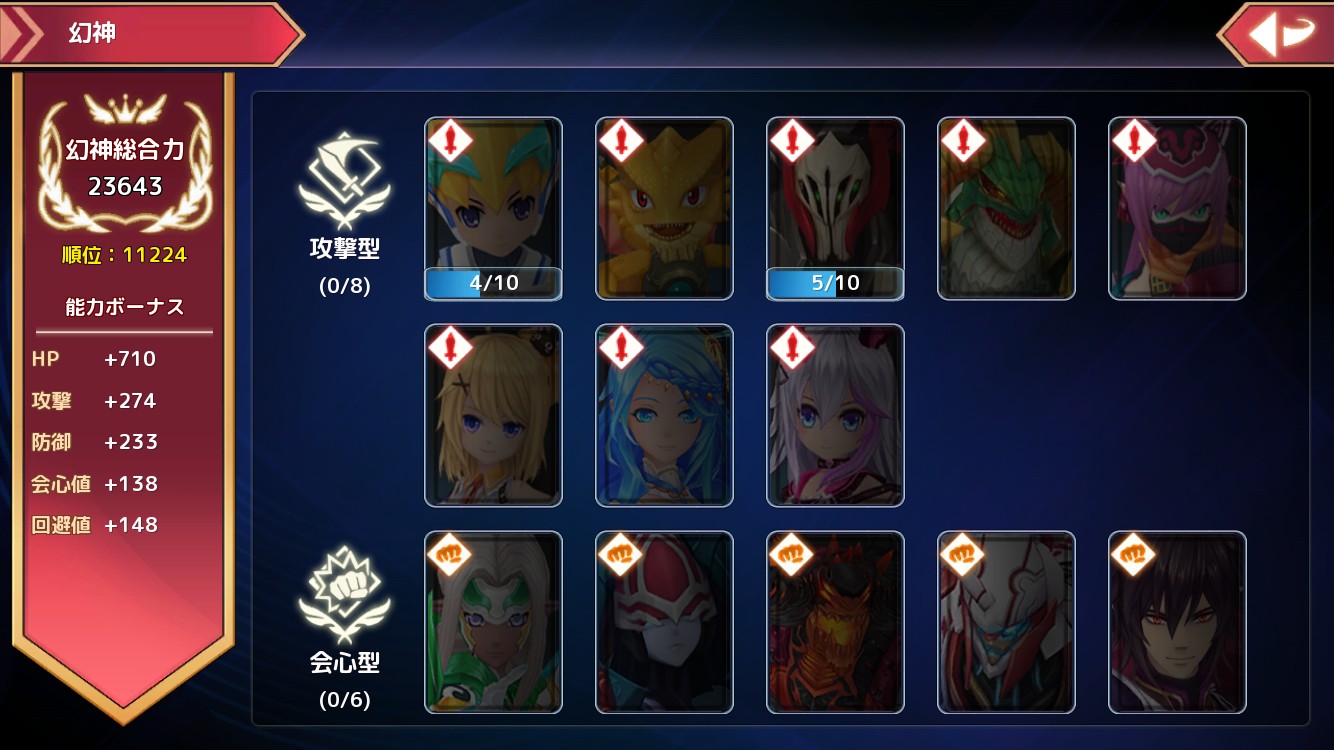 クエスト報酬やガチャによって手に入る魂を10個集めることで、幻神を召喚します。