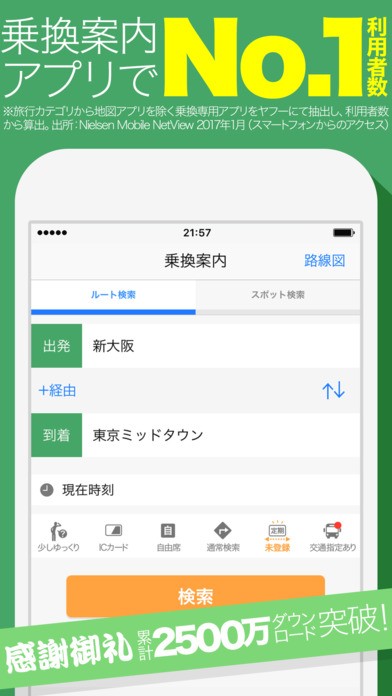 こちらのNAVITIMEアプリでは、この1つのアプリだけでも乗り換え案内(駅から駅まで)・混雑リポート・地点検索など、様々な機能が利用できます。