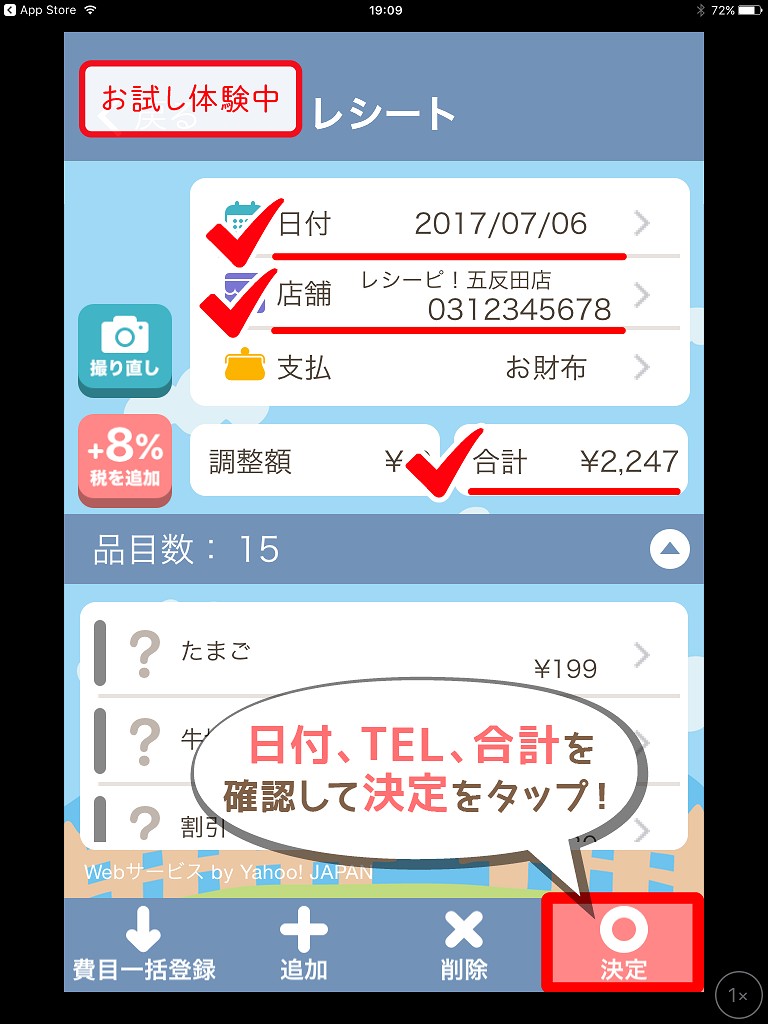 カメラがスキャナの役割をしてくれて、この機能があることによって今までの煩わしさが大幅に減り、家計簿の記録を残すことができるのです。