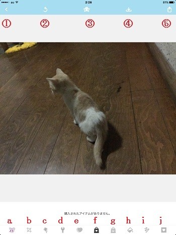 f. デコレート・アイテムを写真に配置したり、角度を変更したりできます。