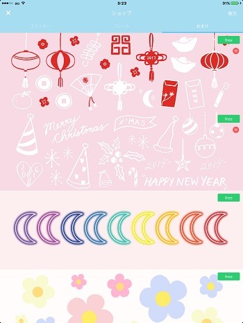 デコレート・アイテムはステッカー・フレーム・おまけが用意されています。