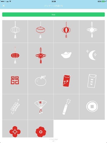 画面上部のFreeボタンをタップすると下のアイテムをセットで取得できます。