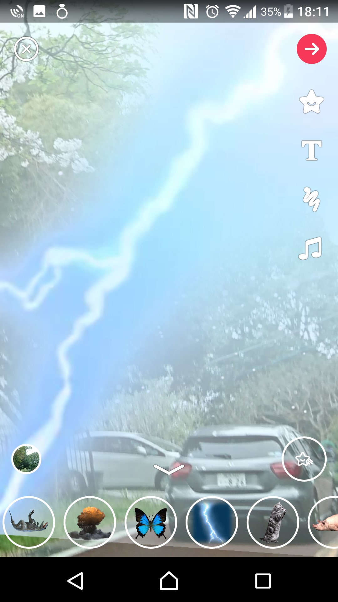 春雷です(笑)。見えにくいのですが、桜の花びらもちらしています。この激しい雷では前の車が危険なので、Framyの特にユニークな機能で守りたいと思います。