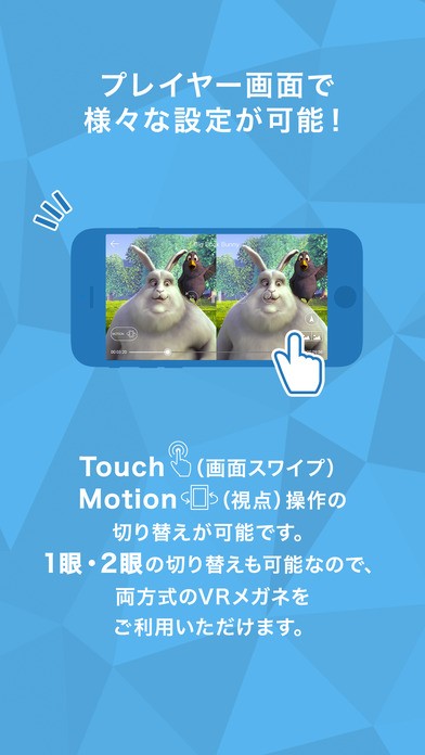 左下の「MOTION」または「TOUCH」は、VRゴーグルを使用する場合、画面を視点で動かす(MOTION)か、画面スワイプで動かす(TOUCH)かを選択するボタンです。使いやすい方に設定しておきましょう。