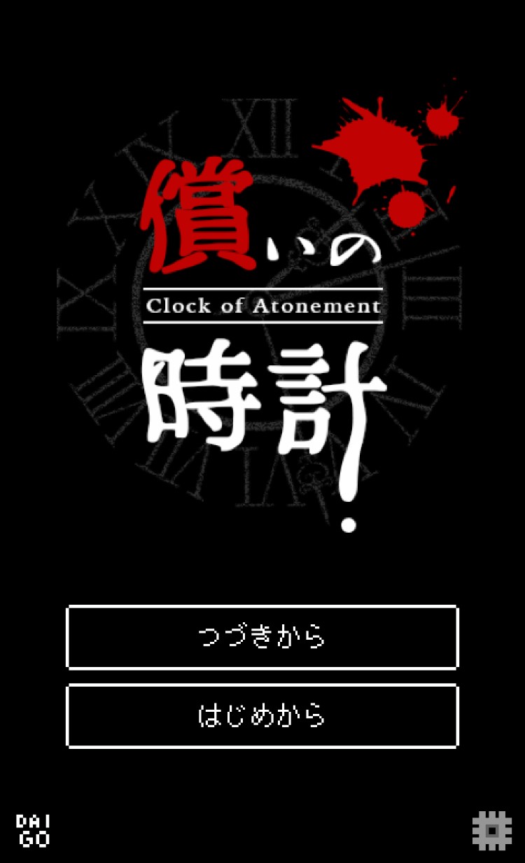 左下の“DAIGO”のボタンでは、Storeアプリが開き、「償いの時計」アプリの制作者である