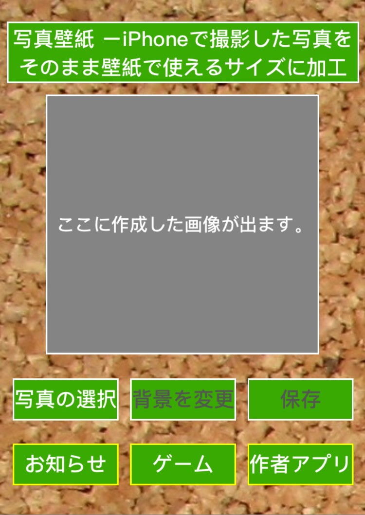 カメラアプリを開いて写真を撮ってから、この「写真壁紙」のアプリを開き、