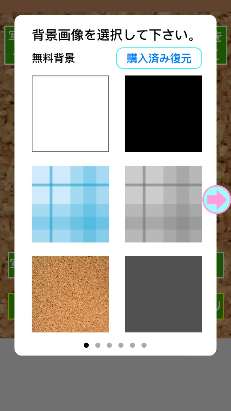 無料の背景が6種類あり、その中から背景を選ぶことができます。