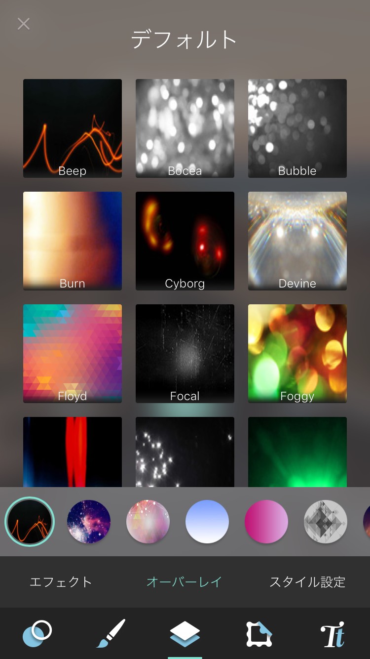 エフェクト、オーバーレイ、スタイル設定をすることができます。