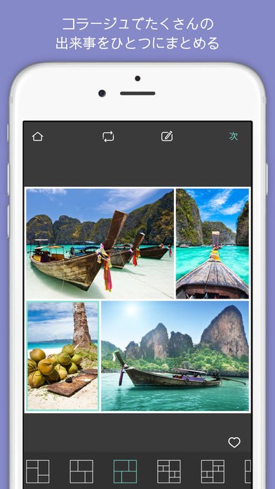 いくつもの写真を選択して、コラージュ写真を作ることができます。