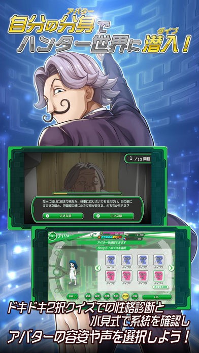 声優好きの方もチェックしておきましょう。ゲームを始めたら最初におばあさんから7つの質問をされるので、二択から選んでください。選んだ結果であなたの分身となるアバターキャラの念系統が決まります。