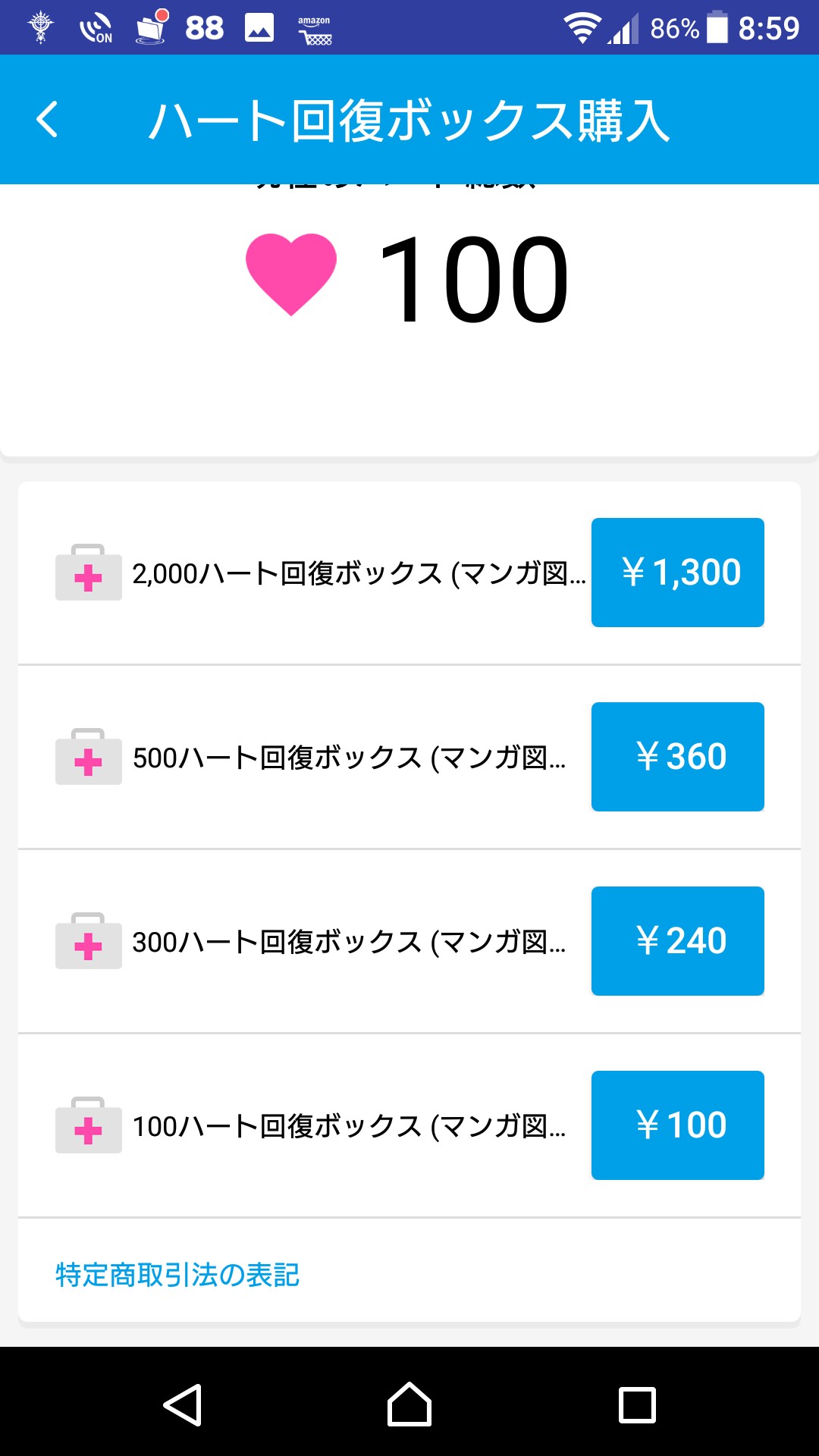 ハートは「ハート読み」に分類されている未読漫画のページを1ページめくるごとに1消費されます。ハートがなくなるとそれ以上閲覧することはできませんが、複数の回復手段があります。