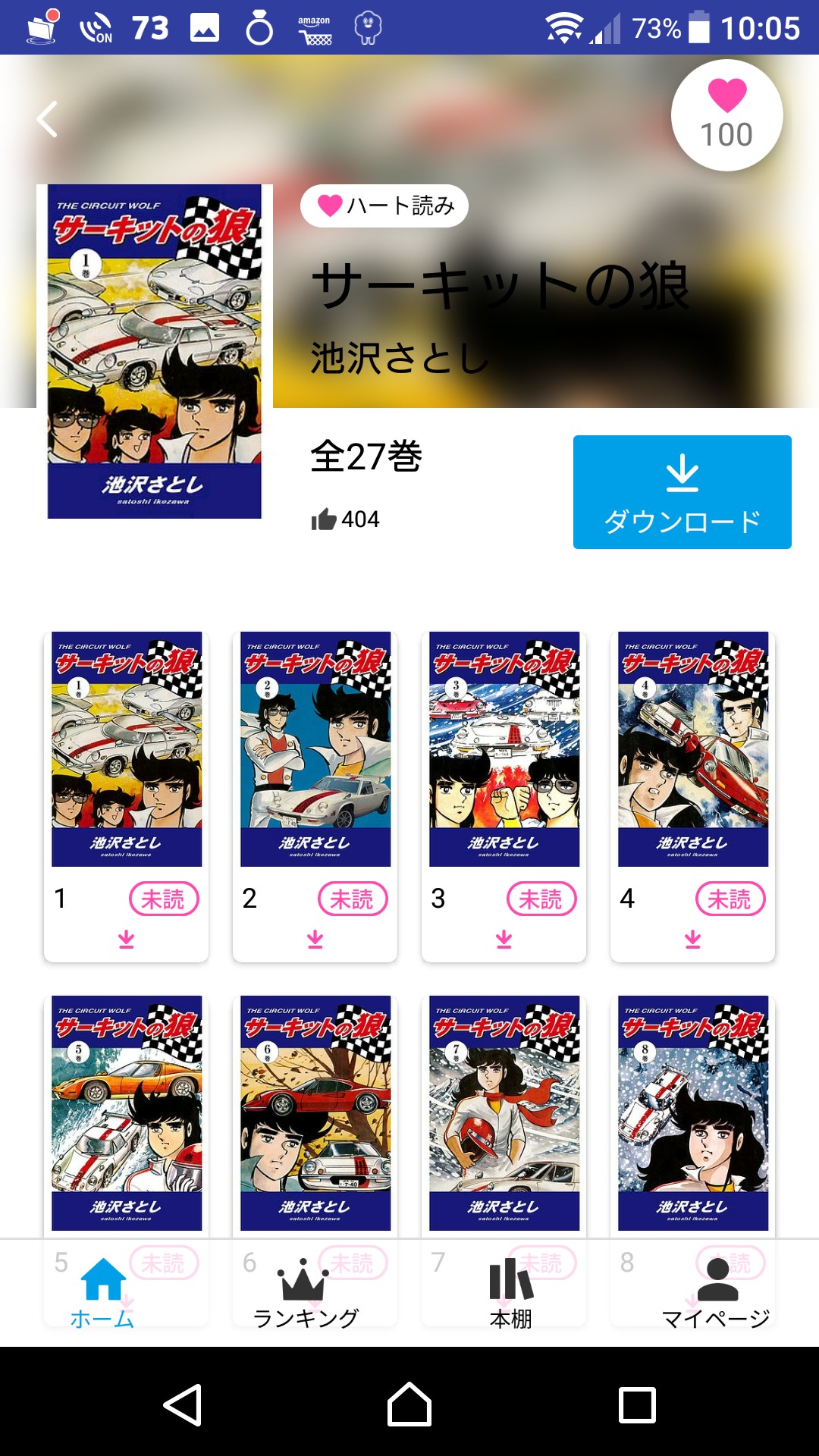 ダウンロードしたい作品をタップすると作品ページにジャンプします。そこから「ダウンロード」をタップし、ダウンロードする作品を選べばダウンロードが開始します。ダウンロードした漫画は「本棚」から閲覧することができます。