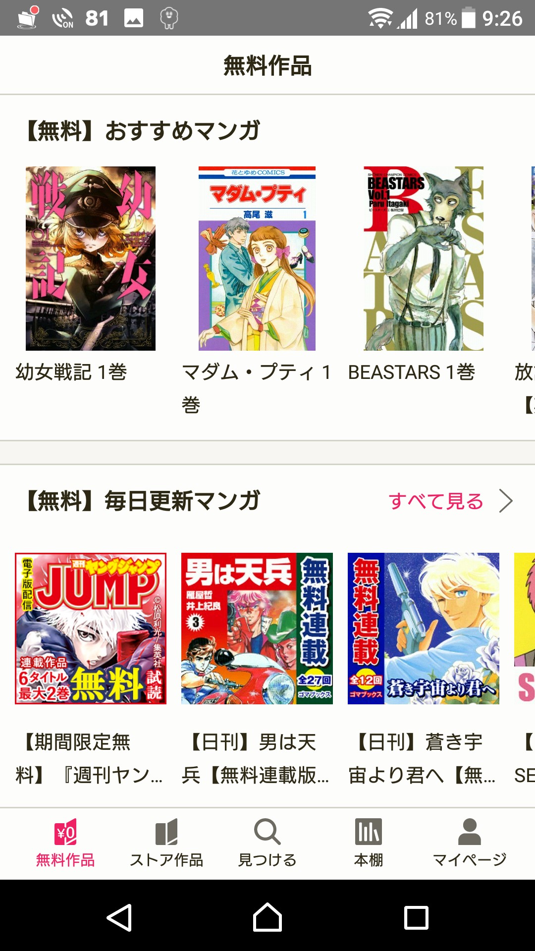 話題作の期間限定無料配信などを頻繁に行っているため、気になる作品を軽くチェックしてみたいというときにおすすめです。面白ければそのまま購入ページにもジャンプできるので、がっつり読むというよりは立ち読み感覚で使用するアプリです。