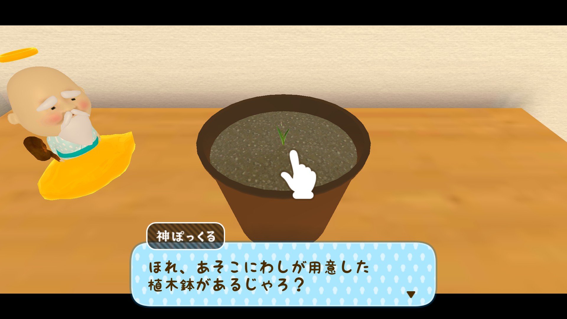 神ぽっくるの用意した植木鉢にタップして妖精水をかけていきます。