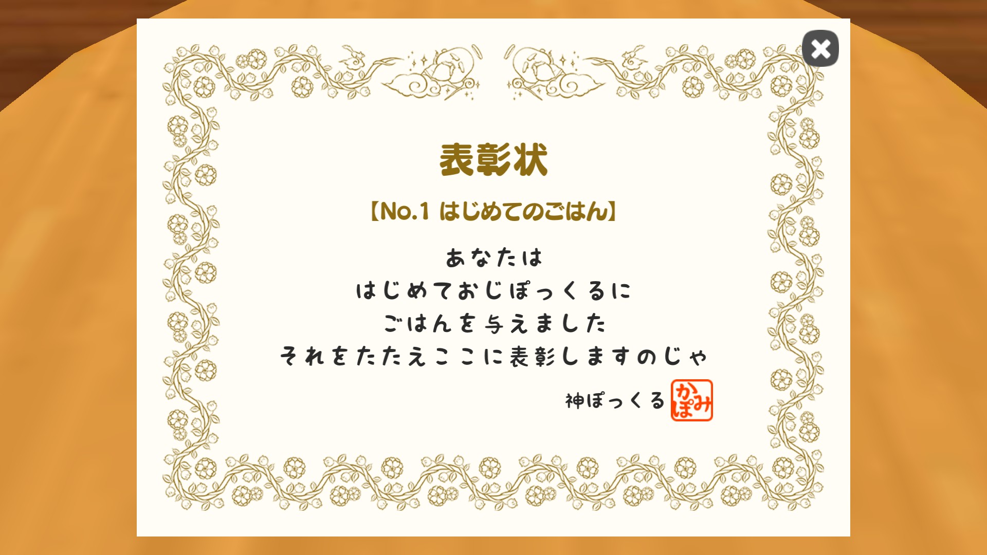 ゲームを進めていくと「表彰状」を神ぽっくるからもらえます。
