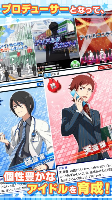男性アイドルを育成することが目的です。プロデューサーとしてまずは営業を行い、仕事をとってきましょう。この営業は他のゲームでいうステージやクエストに当たります。昔のソシャゲをやっていた方には懐かしいシステムで、