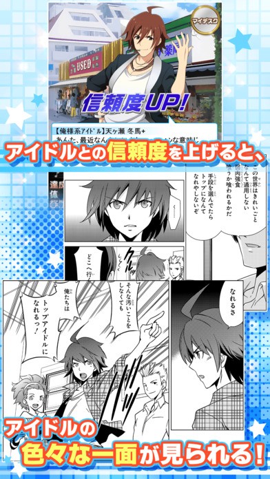 つまり男性のアイドルを育てようという趣旨なわけです。本家のアイドルマスターと違って女性色は皆無で男性メインのゲームアプリですから、必然的に女性に向けたゲームとなっています。