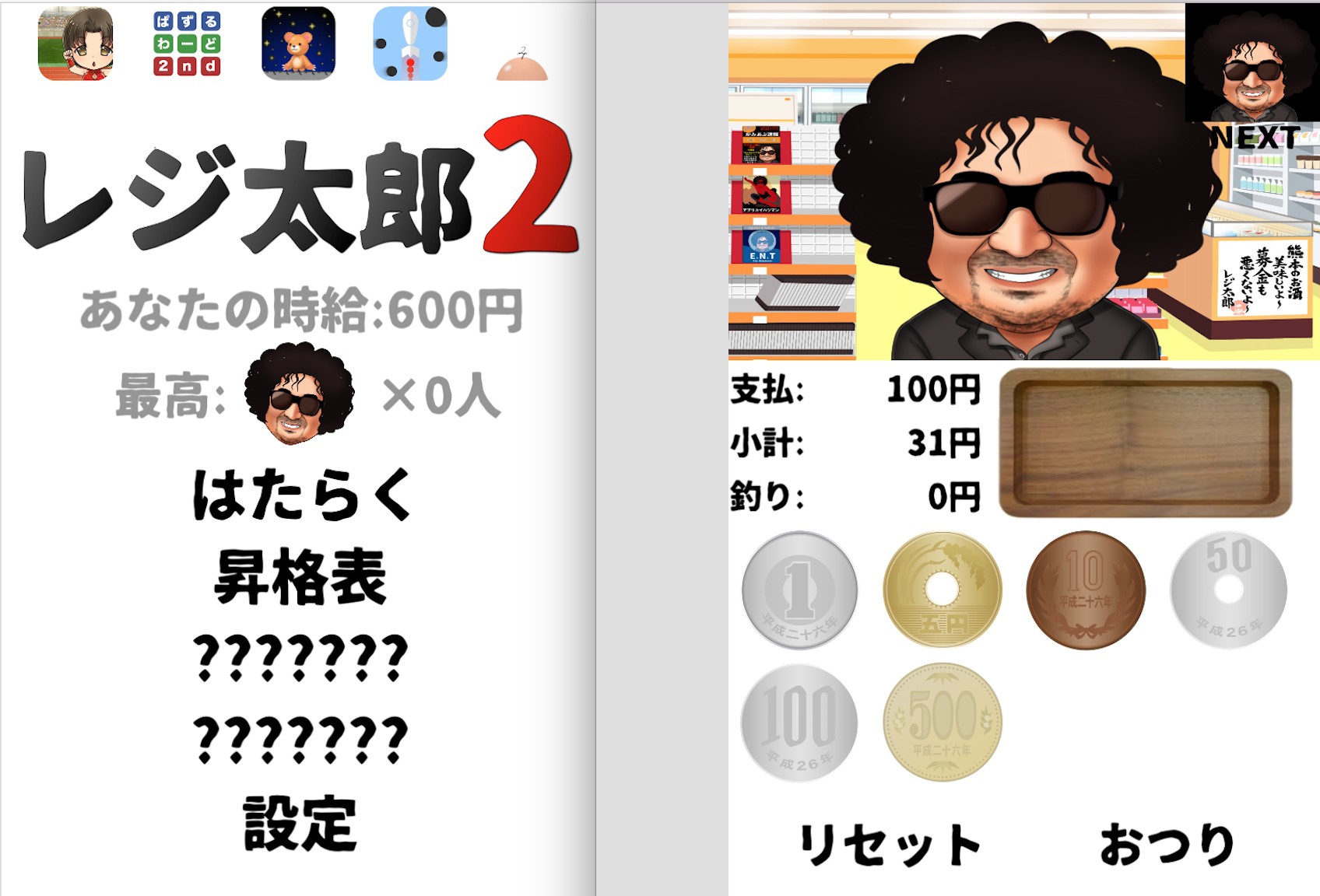 暇つぶしに最適!「脳トレ!レジ太郎2-無料おつり計算ゲーム」