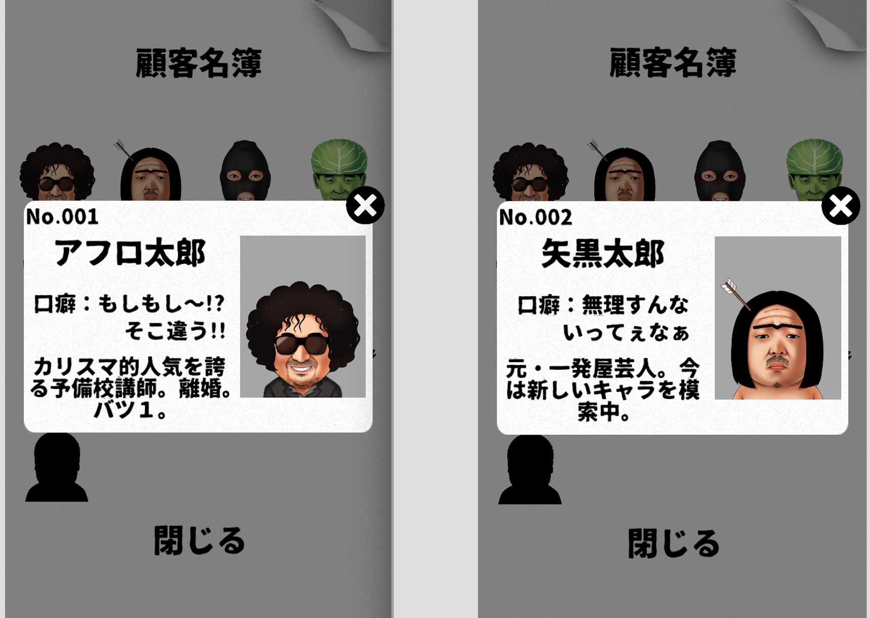 「昇格表」には、「30人斬り、50人斬り、100人斬り」達成するごとに新しいお客さんが解放されます。