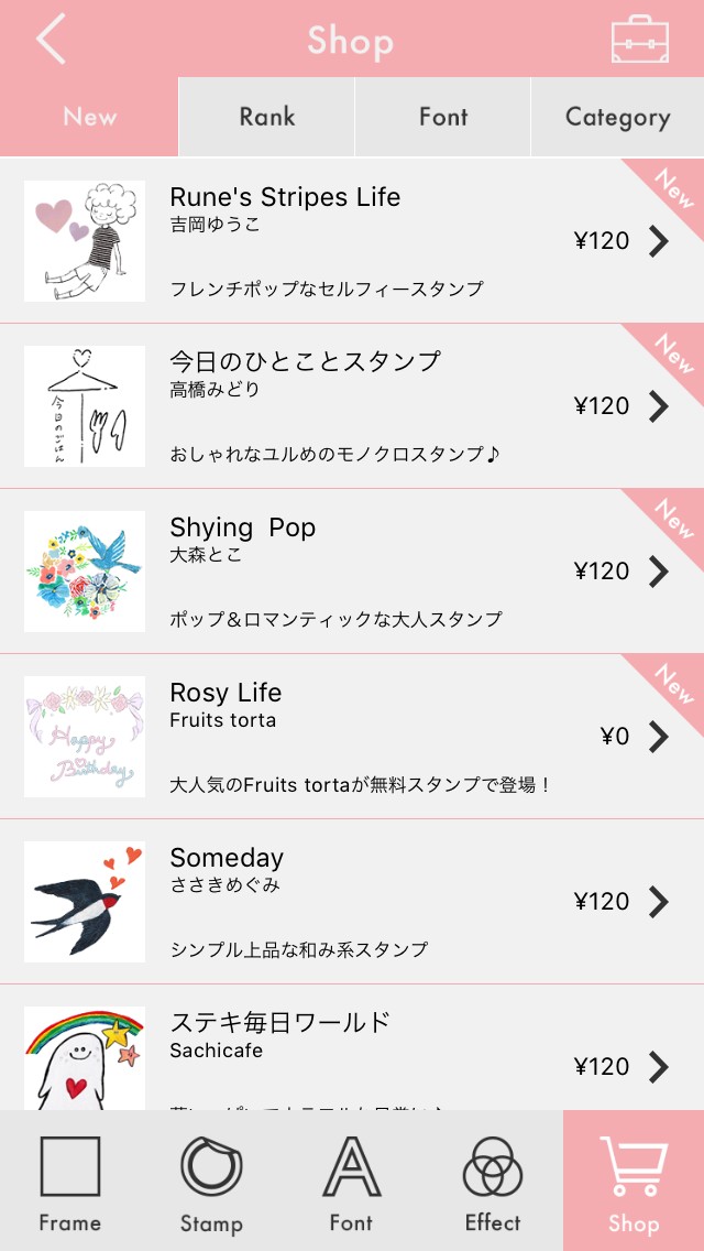 Pop camのShopで買うことのできるスタンプは全部で5600種類以上、フォントに関しても170種類以上ものものから選ぶことが出来ます! しかもだいたいは有料になのですが、無料のものもちらほらありました。そしてそのスタンプというのは人気のイラストレーターさんたちが書いたもので、そうであるがゆえにその業界に詳しい方であれば「あ!あの人のデザインだ!」というのがあるのかもしれません。加工も簡単で、なおかつ有名イラストレーターが書いた可愛い・かっこいいスタンプが¥120で手に入れることができる、というのは人気になるだろうな、と単純に思えます。それはやはり世界共通らしく、45カ国で人気な理由も納得がいきますよね!
