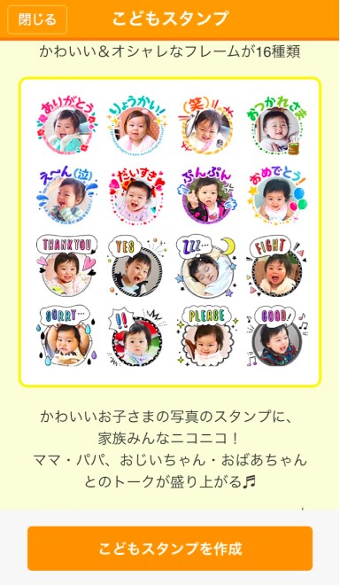 アプリでは、子供の写真を使って、素敵なスタンプを作成することもできます。