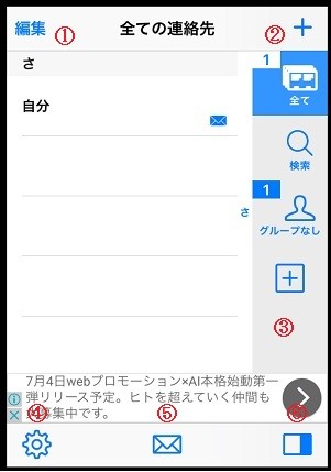 ・①の編集機能は、アプリ内課金無しだと登録先の削除のみが利用できます。