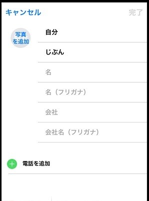 「+」ボタンをタップすると、連絡先の編集と同じ画面が表示されます。