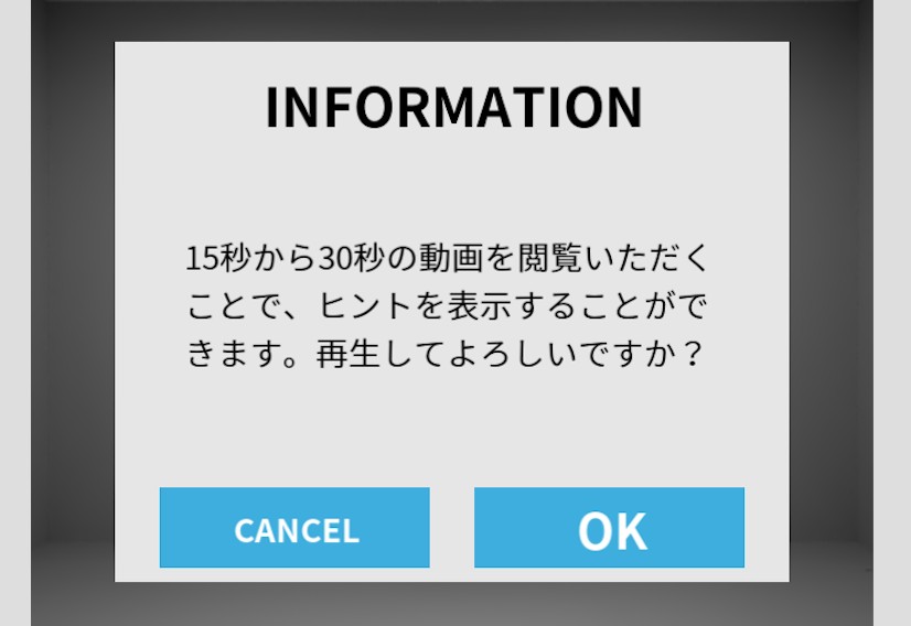 15秒から30秒の広告動画を見た後にヒントが表示されます。
