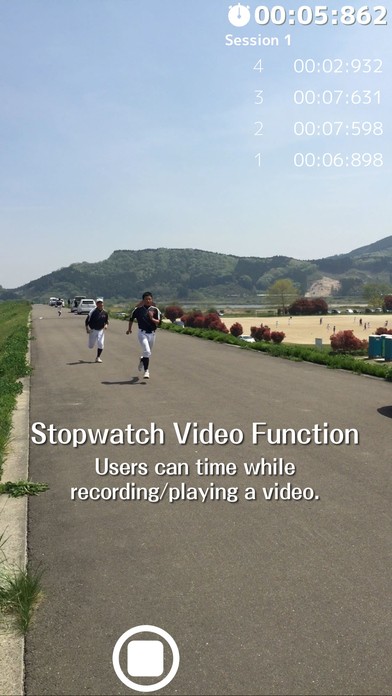 まず「ストップウォッチ機能付き録画」ですが、録画しながらストップウォッチを図れるすぐれものです。10分の1の位までしか測れませんが、まあ十分かな、と。使う用途を考えてみたのですが、私は400mで想像してみました。陸上部の話になってしまい、大変恐縮なんですが、400mというのはトラックぐるっと一周回るものなんですよ。で、その一周を「どう回るか」という戦略が結構重要になってきて、このストップウォッチ機能付きのもので録画することで「何mを何秒で走っているか」とか「次はここまで〜秒で行こう」とか「〜からここまで◯秒かかってる」とか、結構アバウトに「300m当たりまでもったら行ける」という感覚での判断ではなくなり、非常に的確なアドバイスや分析ができるようになると思います。速い人はどこをどのくらいで加速してるのかという速い人との比較も容易にできると思いますしね。