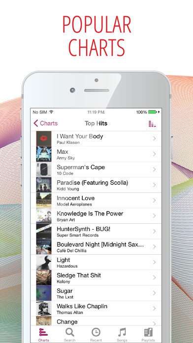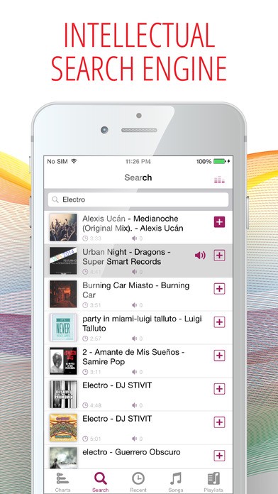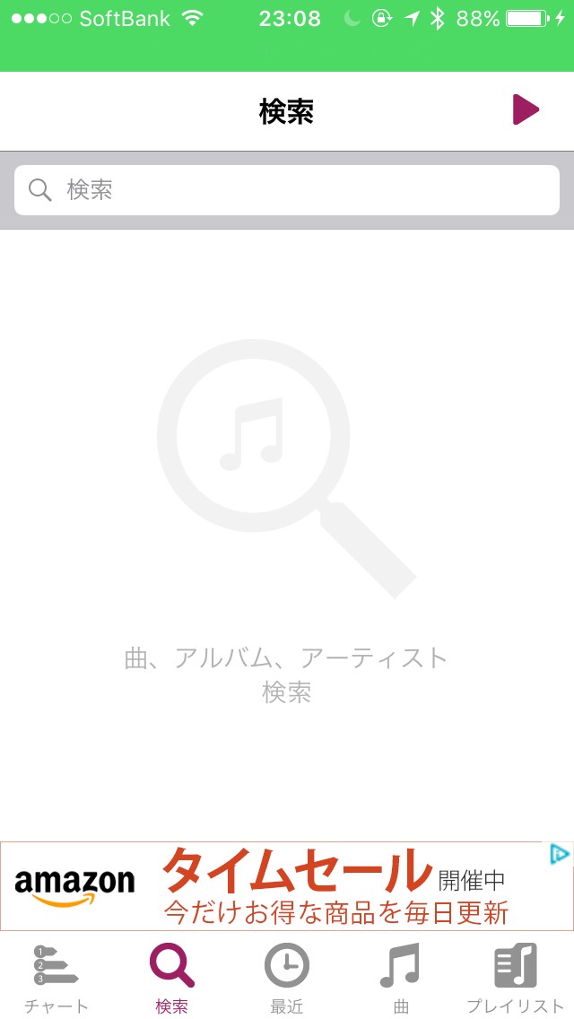 検索する以外にチャートというものから音楽をジャンルに分けてそこから検索をかけるというのもあります。そこには「実際にそのアプリにその曲があるなし関係なく」表示されます。まあなので「こんなのがあるんだ」という検索をかける指標にでもすればいいと思います。
