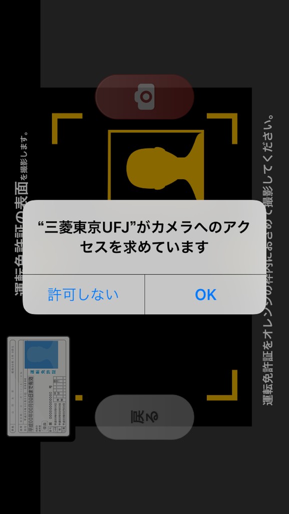 三菱東京UFJグループが配信する無料口座開設アプリです。必要になるのは免許証またはマイナンバーカードです。