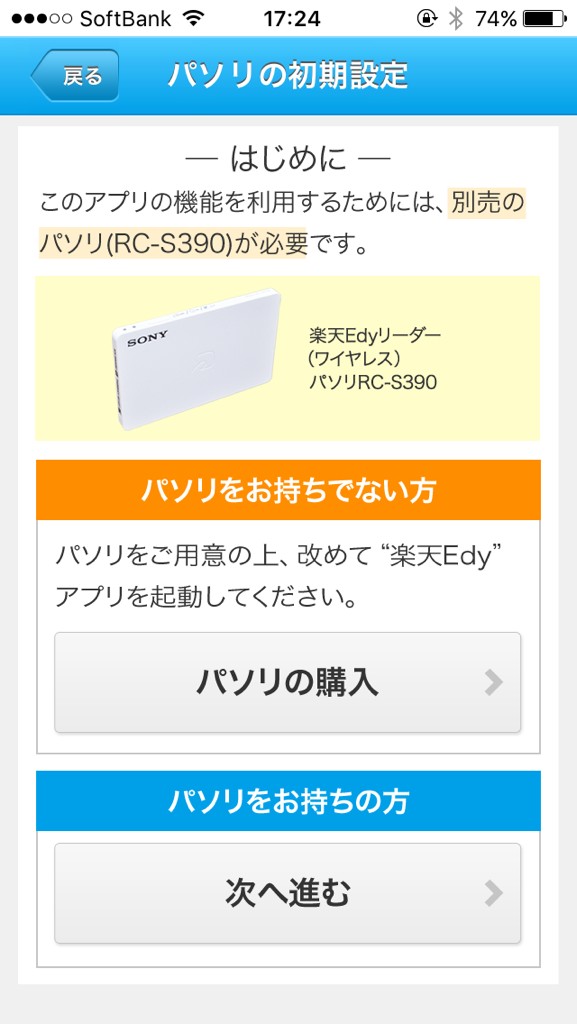 このアプリはBluetooth対応のパソリRC-S390をお持ちの方であれば、どこにいても楽天Edyにチャージが出来るというものです。