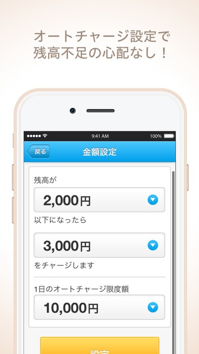 オートチャージする金額と条件を設定しておけば、残高不足になることはありません。