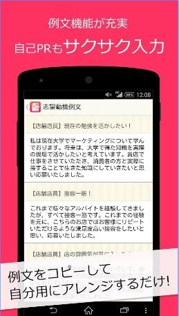 ご安心ください!【レジュメ】には、志望動機や自己PR、さらに職務経歴までもがアプリ内に例文が保存されているんです!これがあればいつも頭を悩ませる志望動機もテンプレートに沿って入力するだけなので、今までよりもずっと簡単に作成できます。