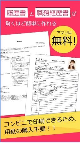 アルバイトやパートに応募するときに、履歴書を書くのをぎりぎりまで忘れてしまうことってありませんか?こちらのアプリは、転職・就職の面接の時に必須の履歴書・職務経歴書を作成するためのアプリなんです!