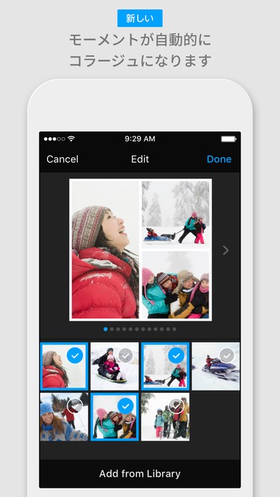 複数の写真を使ってコラージュ写真が作れます。これも自動作成もありますよ。編集も簡単なのでおすすめです。