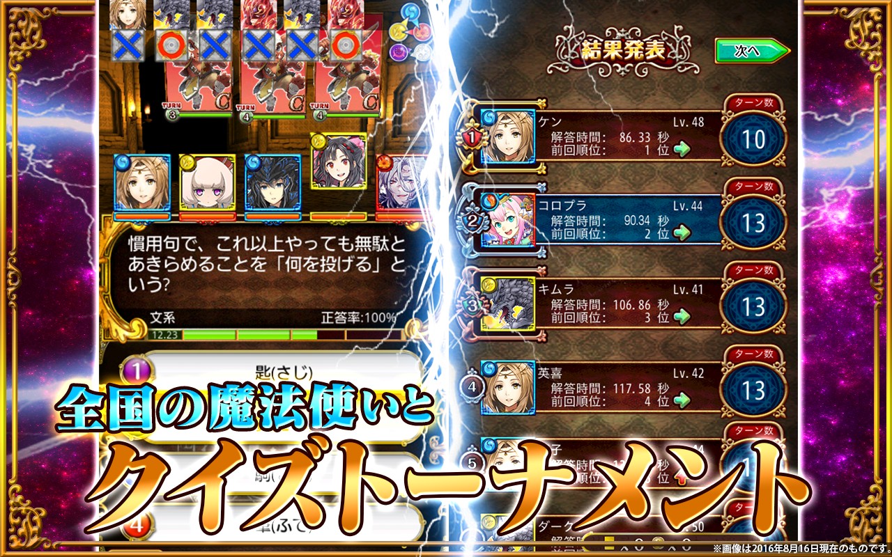 その名の通り、クイズに答えながらクエストを進める冒険ファンタジーで、オンラインで全国のプレイヤーと協力してクエストを進めたり、対戦したり出来ます。